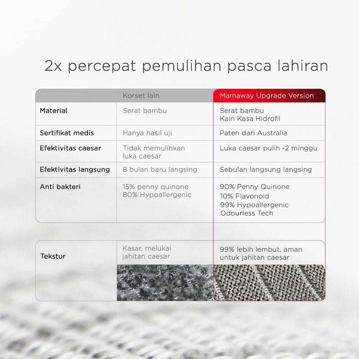 Terbuat dari campuran tekstil canggih yang mengandung 28% arang bambu, bahan ini tidak hanya berfungsi sebagai penahan, tetapi juga memiliki sifat antibakteri alami yang mencegah iritasi dan bau tidak sedap. Konstruksinya dirancang untuk menahan dinding rahim dan otot perut kembali ke tempatnya, dengan variasi ukuran S-M dan L-XL yang mencakup rentang berat badan hingga 120 kg.