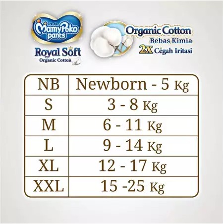 MamyPoko Royal Soft Organic Cotton adalah pilihan popok perekat premium yang menawarkan kelembutan maksimal untuk kulit sensitif bayi dengan varian ukuran lengkap dari NB hingga XL. Dengan rating 4.92/5 dan lebih dari 10.000 terjual, produk ini dikenal sebagai solusi nyaman bagi bayi baru lahir hingga balita.