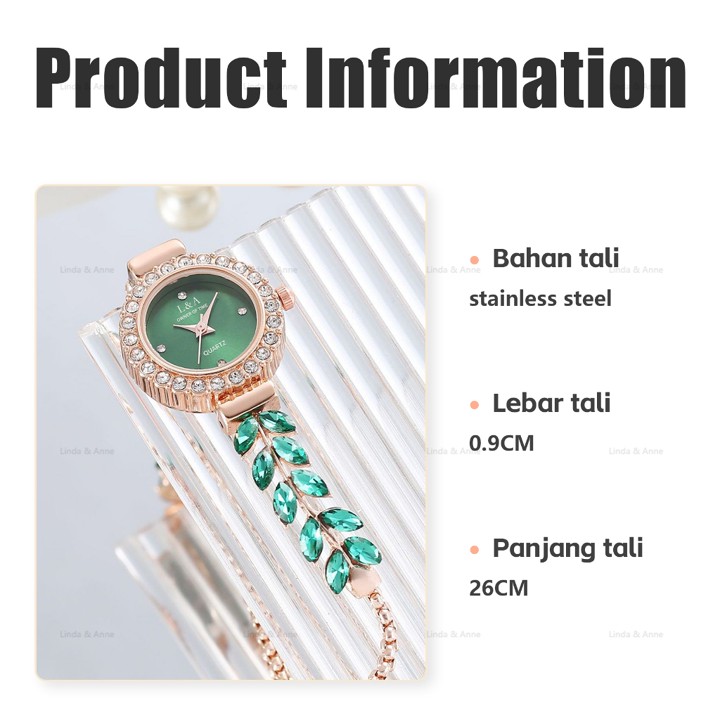 Produk ini menonjol dengan desain yang simple namun elegan, menggabungkan elemen motif bunga dan aksen permata yang memberikan kesan mewah pada ukuran yang mungil. Mesin quartz yang digunakan menjamin fungsi yang akurat, menjadikannya pilihan praktis untuk kebutuhan harian maupun acara spesial seperti kondangan.