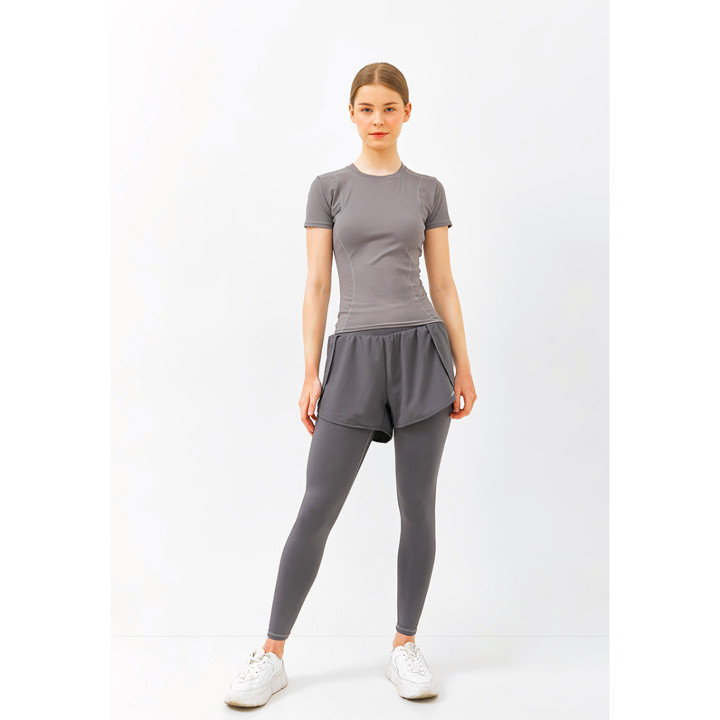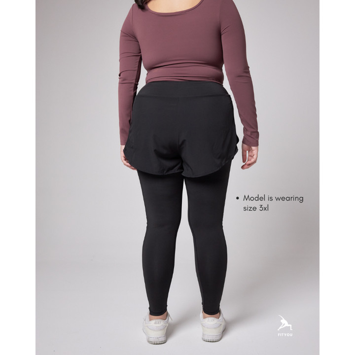 Fitur unggulan produk ini adalah konsep 2-in-1 yang menyatukan legging dengan inner celana pendek, memberikan solusi praktis bagi mereka yang menginginkan bawahan olahraga yang lebih tertutup dan tidak perlu repot memakai dua lapisan pakaian. Kehadiran kantong saku ganda di bagian dalam juga menjadi nilai tambah signifikan untuk menyimpan barang kecil seperti ponsel atau uang.