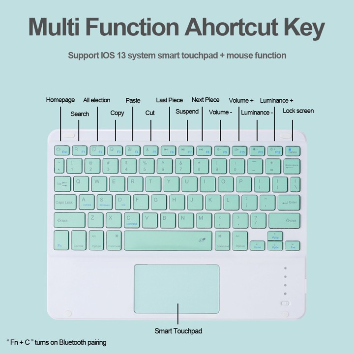 Keyboard berfungsi dengan baik. Packaging standar tetapi aman. Harga terjangkau. Kualitas bagus. Dihubungkan menggunakan bluetooth . Warna unik dan anggun. Dilengkapi buku panduan dan tali usb. Ada tulisan on/off nya