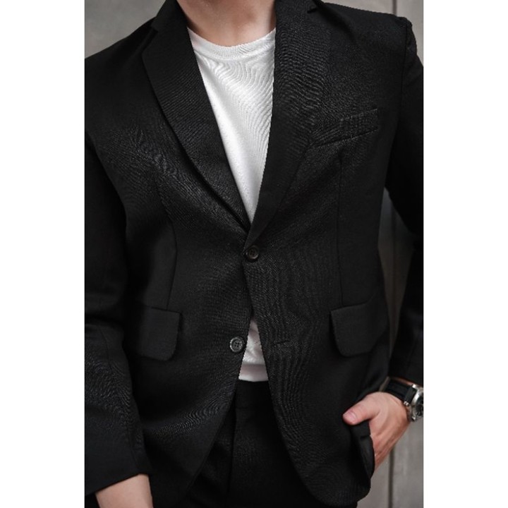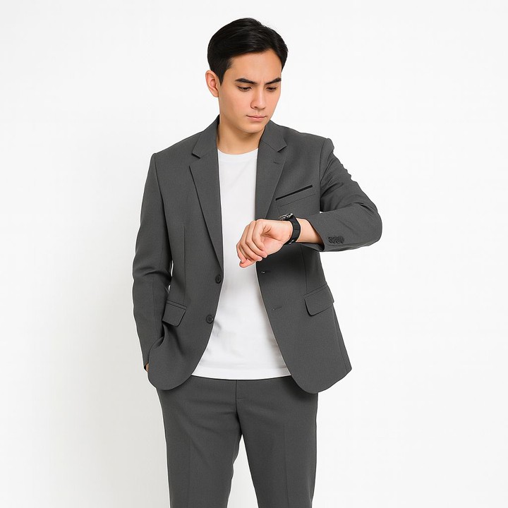 Jas blazer ini menonjol dengan desain slimfit yang membalas badan dengan pas, memberikan kesan elegan dan modern bagi penggunanya. Model ini sangat fleksibel, mampu beradaptasi dengan baik untuk suasana formal seperti wisuda dan pernikahan, maupun gaya kasual di kantor tanpa mengurangi estetika. Potongan yang presisi pada bahu dan lengan memastikan siluet yang rapi sesuai dengan tren fashion pria terkini.