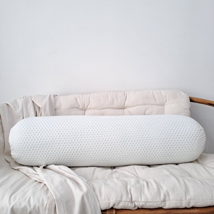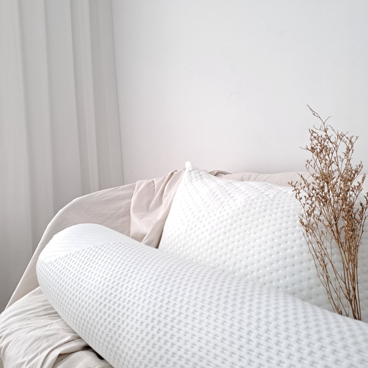 Dari sisi material, guling ini menggunakan bahan cover knitting berwarna putih, yang dipadukan dengan isian memory foam. Keunggulan material ini adalah kemampuan adaptifnya; ia mampu mempertahankan bentuknya dengan cepat setelah ditekan, menunjukkan elastisitas dan fleksibilitas yang tinggi. Meskipun tidak mencantumkan sertifikasi formal, deskripsi menekankan kualitas busa polyurethane yang premium.