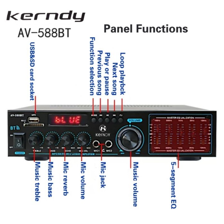 Amplifier Karaok Home Theater AV-588BT ini menawarkan solusi audio hemat biaya dengan fitur Bluetooth, EQ, dan input mikrofon ganda yang cocok untuk pemula. Dengan rating 4.79/5 dan harga di bawah Rp 400 ribu, perangkat ini menjanjikan suara jernih dan bass kuat untuk kebutuhan hiburan rumahan.