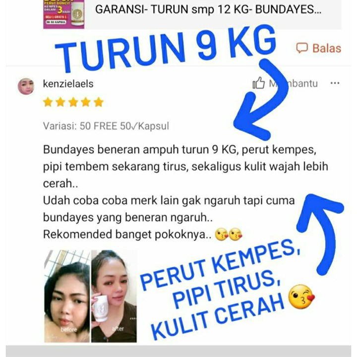 LOSSS.... 5 KG lemak minggat.. badan jadi lebih enteng, perut jadi ramping.. Gak kecewa sama ini produk, benar benar bisa buat andalan menurun kan berat badan ku... makasih bundayes.. β€οΈβ€οΈβ€οΈπ₯°π₯° KATANYA klo turun BB nya mo di kasi bonus kok gak pernah di kasi ya πββοΈπββοΈπββοΈπββοΈπ