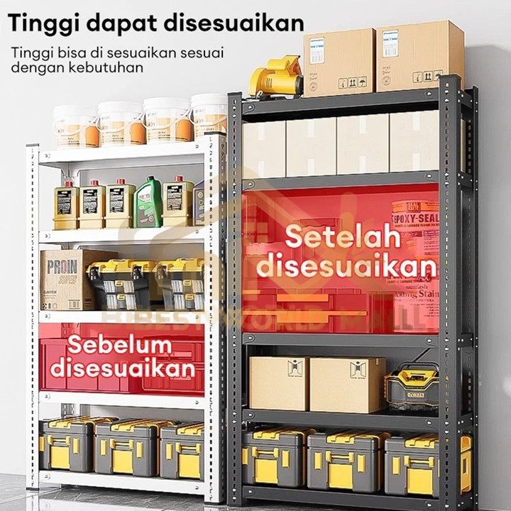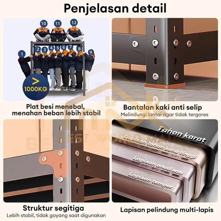Pemilik toko kelontong, pemilik gudang penyimpanan, atau manajer properti yang membutuhkan rak penyimpanan industrial yang sangat kuat, serbaguna, dan hemat biaya.