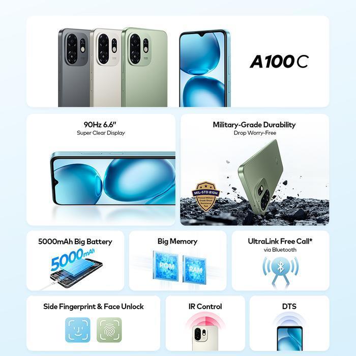 Produk ini dilengkapi dengan prosesor T7100 Octa-Core yang mampu menangani tugas dasar hingga menengah dengan lancar, dipadukan dengan RAM 4GB dan penyimpanan internal 64GB yang memadai untuk aplikasi sosial media dan penyimpanan data ringan. Layar dan kamera utama 8MP dirancang untuk memenuhi kebutuhan fotografi sederhana sehari-hari, sementara dukungan jaringan LTE memastikan konektivitas yang stabil.