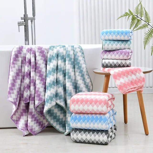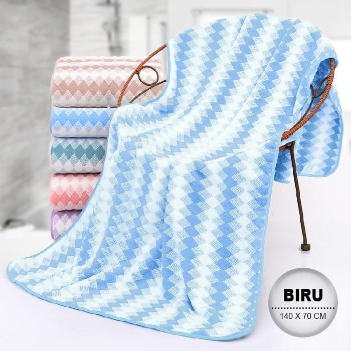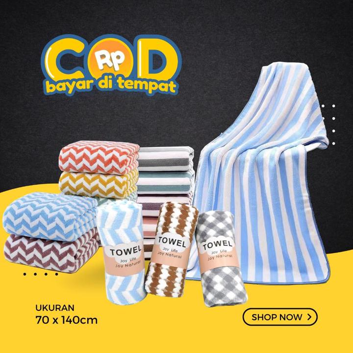 Handuk mandi multipack berisi 6 pcs dengan bahan microfiber lembut dan daya serap tinggi, cocok untuk kebutuhan harian keluarga dengan harga yang sangat terjangkau. Produk ini menawarkan variasi motif polka dot dan stripes dengan ukuran standar dewasa 70x140 cm, meskipun beberapa ulasan menyebutkan ketebalan yang bervariasi.