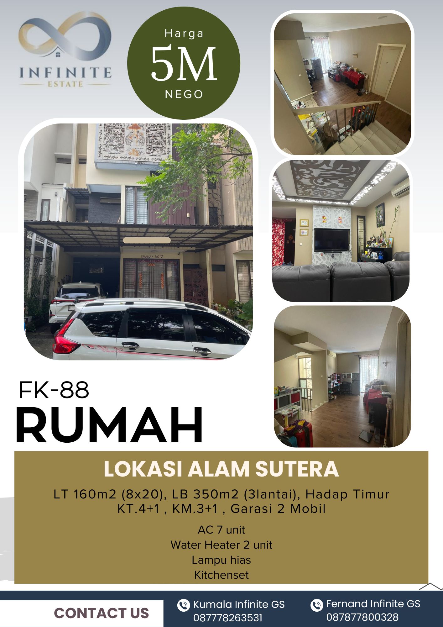 Dijual rumah istimewa dengan alamat di Tangerang, Banten seharga 5 M. Spesifikasi rumah sebagai berikut :