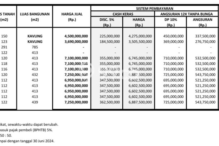 Harga per m2 | Rp. 18,18 jt | Rp. 23,76 jt | |