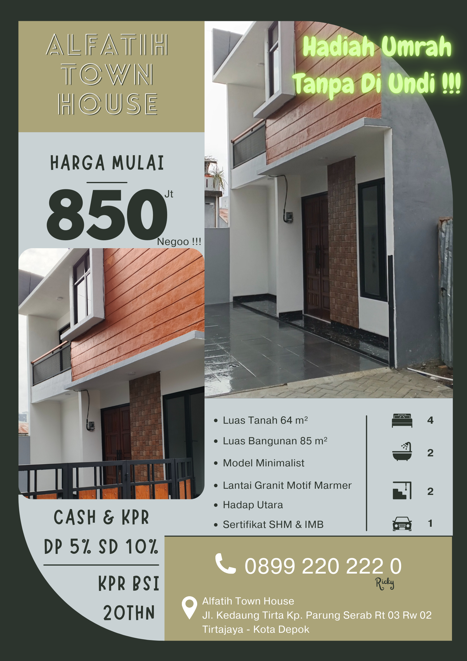 Dijual rumah istimewa dengan alamat di Depok, Jawa Barat seharga 850 jt. Spesifikasi rumah sebagai berikut :